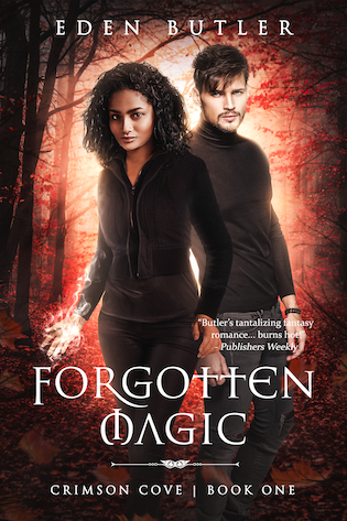 WHAT REVIEWERS ARE SAYING:★★★★★”Butler’s tantalizing fantasy romance, originally self-published as Crimson Cove, burns slow and hot…The magical elements are electric and the chemistry between Bane and Janiver is delicious. Butler builds the tension slowly, carefully pulling story threads to a satisfying but open-ended climax. Readers will be eager to return to Crimson Cove.” – Publishers Weekly★★★★★ “Eden is a masterful storyteller who takes mere words and turns them into magic.”★★★★★ “I REALLY LOVED this fresh, innovative, and out of the box concept of a modern romance with a dark, ethereal twist.”Goodreads / Amazon / Barnes & Noble / iBooks / Kobo—EXCERPT:“Some of us didn’t need to train in Norway with thousand-year-old mages to learn our craft.” Made a little bolder by the liquor, I stepped into Bane’s personal space and ran the tip of my fingernail over the runes wrapped around his forearm. “All these runes, all that pain and blood, I never once had to suffer so much for my craft.”“Maybe,” Bane said, taking the bottle from me, “if you had, you wouldn’t need the liquor.”“Maybe I like the liquor.” My tongue was heavy in my mouth and I wasn’t sure why my voice had suddenly lowered or how I could feel the ley lines whispering against my mind.But Bane wasn’t drinking, and he seemed able to control how the lines affected him. He was too versed in blocking raw magic. Still, he didn’t seem wholly unaffected, and for whatever reason, he at least didn’t object to how closely I stood in front of him. “You strike me as the type of witch who likes things that are bad for her.”The laughter came quickly, the first I’d released in over a week. Just then, I didn’t think about the darkness that took me with Freya’s death. Something light, almost sweet came into my head and I glanced at that bottle, only just realizing that I hadn’t been drinking whiskey at all.“Berry Burn wine?”“You didn’t know?” He laughed, scrubbing his face. “Circe, Jani. I thought you were more careful.”Shrugging, I let the elixir work through me, enjoying the way its potency made everything feel electrified and sweet. Dipping my head back, a sudden reminder of the worst possible thing for me—the wizard standing inches away—seemed so attractive, so sweet, and I licked my lips, my inhibitions lowered as I watched him.Unbidden, a memory of that solitary day when I’d bitten the forbidden fruit and I forgot myself for just a moment filled my head. “And, baby, you’ve got no idea how much I like things that are bad for me.”Bane blinked. I blinked and just for a second I savored the silent room, the energy that built between us then. “Did you…did you just call me baby?”It was if he’d unstoppered a drain and I twirled down into its belly. Berry Burn wine or not, I immediately sobered. Mortification, humiliation, it had to be all over my face, easily read in my expression. But I was not a witch who would admit defeat or mistakes made so quickly. I was a natural survivor. I’d say anything to weasel my way out of a tight spot. Or utter humiliation.“No.” There was a touch of humor in my response—forced and clearly fabricated—but it didn’t stop me from making that sound or stepping back when Bane held my wrist.“You did.” He pinned me in the corner of the counter with that wide body nearly engulfing me in shadow and heat. “Damn.” Bane came so close, mouth too near my neck as though he was just managing to control himself and not devour me right then and there. “Why do I like that?”I knew why and just then, I hated that he didn’t. Because you claimed me! Ten years ago, I wanted to scream. Because I am yours, because you belong to me.Some part of him had to know the truth, despite the block I had put on his memories. Somewhere, behind all that power, the knowledge, the lists of lines of duty and expectations, lay the hidden memory of that one blissful afternoon with me in that empty classroom. The day our nexuses melded. The day we claimed each other.The way Bane looked at me, the deep focus of his gaze on my mouth, shifting across my fingers brought us closer and closer to the edge of something that could mean nothing but misery. For him, at least. And I couldn’t stop it. I didn’t want to stop it.All around us seemed to settle, every sound, every scent, just like it had that day, just like it had the first time we kissed. The only sound I could clearly hear was the steady, rhythmic pulse of his heart and mine—two separate bodies moving toward each other, closer, nearer until Bane’s stubble grazed on my cheek and he held my head still, insistent between his fingers.I had only to tilt my head back a little. Move my chin, wet my bottom lip and he’d take my mouth. It was all there on his face. Expressions that told a thousand stories, made a million promises, and I wanted them all inside me with him, where he was meant to be.Just one small movement and it would be done.Bane tilted my chin, held my face between both hands now and I heard him come closer, waiting, making my mind up that I would only take a taste…A taste that wasn’t mine.A touch that belonged to someone else.Eyes shut tight to clear away Caridee’s perfect skin, her perfect hair—the flawless Rivers coven regalia that Bane deserved. The one taught over and over to us as expectation. Certainties that had never been changed. The way the Cove existed so that there was no upset, no chance of shaming all of the Cove by letting the mortals know what we are and how we lived.Expectation.Certainty.Things that had been constants for everyone in the Cove. Each coven depended on the other. Each den, every pack, all connected.The way of things.The things I’d left behind.Before I realized I’d uttered a sound, the word came out, my hands pushing against that wide chest and “Parley!” echoing around the kitchen.Bane steadied 