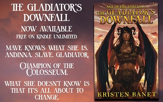 Mave knows where she stands in life.She’s an Andinna. A member of the winged, horned, and tailed warrior race that the Elvasi Empire defeated in the Hundred Year War and then enslaved. She’s a slave, and has been one for a thousand years, the personal property of the Empress of the Elvasi Empire, since the end of the War. She’s a gladiator, thrown onto the sands of the Colosseum to die, though it backfired on those who wanted her dead. She’s the Champion of the Colosseum, and has been for roughly nine hundred years.All of these things have marked her as an outcast among her own people. Hated, distrusted, and despised, she knows the name of her people, but not much else.But she knows where she stands. Keeping her head down and her blades sharp has carried her this far, and she refuses to acknowledge the deepest wishes she holds in her heart. Those will only get her killed.Alone, she’s stood against everything they have ever thrown at her, refusing to give them what they want.What Mave doesn’t know is that it’s all about to change.Goodreads / Amazon—Only 99¢ for a limited time!—