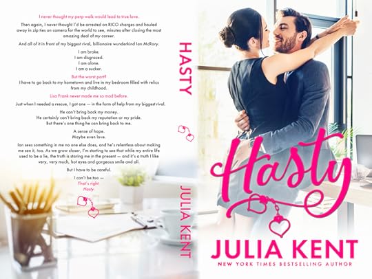 AN ALL-NEW STANDALONE FROM NEW YORK TIMES BESTSELLING AUTHOR JULIA KENTI never thought my perp walk would lead to true love.Then again, I never thought I’d be arrested on RICO charges and hauled away in zip ties on camera for the world to see, minutes after closing the most amazing deal of my career.And all of it in front of my biggest rival, billionaire wunderkind Ian McRory.I am broke.I am disgraced.I am alone.I am a sucker.But the worst part? I have to go back to my hometown and live in my bedroom filled with relics from my childhood.Lisa Frank never made me so mad before.Just when I needed a rescue, I got one — in the form of help from my biggest rival.He can’t bring back my money.He certainly can’t bring back my reputation or my pride.But there’s one thing he can bring back to me.A sense of hope.Maybe even love.Ian sees something in me no one else does, and he’s relentless about making me see it, too. As we grow closer, I’m starting to see that while my entire life used to be a lie, the truth is staring me in the present — and it’s a truth I like very, very much, hot eyes and gorgeous smile and all.But I have to be careful.I can’t be too —That’s right.Hasty.The final book in the USA Today bestselling Do-Over Series (Fluffy, Perky, Feisty), as Mallory’s sister, Hastings “Hasty” Monahan gets her turn at a happily ever after that starts off with an arrest.Hers.Goodreads / Amazon / iBooks / Kobo / Google Play