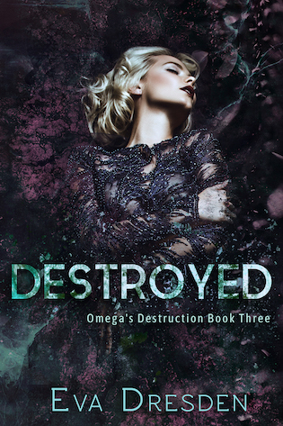 Broken and damaged, Quinn refuses to be destroyed.She rages against the bond Tobias Kahler forced her to complete between them, denying the pull of her claim set into his soul that fateful day. Struggling against the power of his will, she won’t become the smiling, placid thing he attempts to mold her to be.An unseen foe seeks to take matters into their own hands, threatening Quinn and everything she holds dear. Forced to cling to Tobias for support and strength with the constant threat, he’s thrown into a whole new light. One where Quinn faces seeing him for more than the monster she’s feared and hated.Amidst their violent past and ever turbulent future, they must learn to accept one another as they are or in this final battle, much more than bodies will lay broken.Destroyed is the third and final book in the Omega’s Destruction Trilogy, a raw and thrilling Omegaverse tale. It is not a traditional romance, containing dark themes and complete power exchange. Scenes are not glossed over, which may be distressing for some readers.Goodreads / Amazon—EXCERPT:She was incomplete now. Not just bound to the man, subject to his will, but he in return. Tobias Kahler had gotten what he wanted the moment he forced her to claim him. He’d invaded not just her body, but her mind and soul far beyond the constraints of social acceptance. No one else would have dared to create the vicious circle between them, throwing away generations of beliefs and plunging headfirst into the taboo. Her will pitted against his was a small and frightened thing.She never stood a chance against something so devious, so underhanded.Quinn was the perfect slave now, or she would be once she’d been battered into complete submission. Something that she’d once sworn would never happen to her was an all too real probability now. Each day it was harder to fight her way free of the heady warmth, more difficult to deny the comfort and serenity that basking in his presence gave her. Surrounded on all sides as her sense of self was stripped away one tangled thread at a time, it was him, always him in her thoughts. One touch, one whiff of his scent, and she was lost.“Shh, little bird. It’s all right,” he murmured against her shoulder, lips moving against the thick scars of his mark. Three bites, all mangling her skin into an atrocity that said she was his and would never escape it. The wet heat of his tongue moved over the wrinkled flesh, tasting the salt of her sweat, swallowing her down.Whining into the sheets, she tried to jostle away as the sensation of working muscle, heady pleasure, and satisfaction assaulted her. They weren’t hers, but the lines separating Quinn from him were blurred, softening with every ragged breath. With him locked tight against her, she wasn’t going anywhere. Not until he released her.He had no intentions of doing that anytime soon.