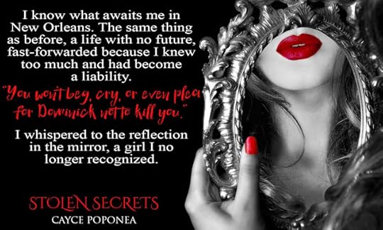 Title: Stolen Secrets Author: Cayce PoponeaGenre: Romantic Mafia Suspense StandalonePublished: November 8, 2016