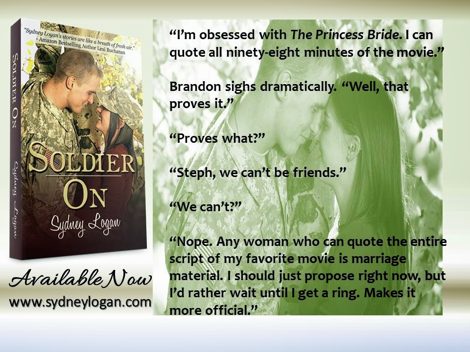 June is the book birthday for Sydney Logan's military romance, Soldier On! Keep reading to check out today's #TeaserTuesday, and be sure to grab your copy for a special birthday price!
