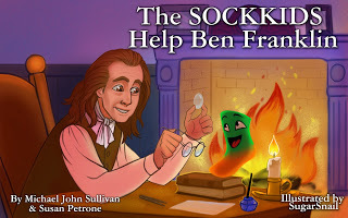 Where Do Our Missing Socks Go? We tell you! Readers find out in our children’s series -- The SOCKKIDS. We follow the Socker family through many adventures, from encountering the slobbery mouth of the family dog to meeting Santa as he comes down the chimney to helping a fireman save a baby to the most sky sock going to the school dance for the first time. Thanks to the time-travel opportunities afforded by the spin cycle of the washer, the Sockers learn about some of the most important humans in the world. Children two and up and their parents will be drawn to the journeys of the family and the universal and timeless lessons they teach: don’t be afraid of new experiences, treat others as you would like to be treated, and of course beware of the spin cycle! In this book’s story, we read about Sudsy landing on the foot of inventor Ben Franklin. Sudsy, the bug-playing boy sock, discovers with Ben Franklin the wonders and dangers of electricity. The book includes safety rules and discussion questions put together by an experienced classroom teacher in helping parents and children respect the power of electricity.