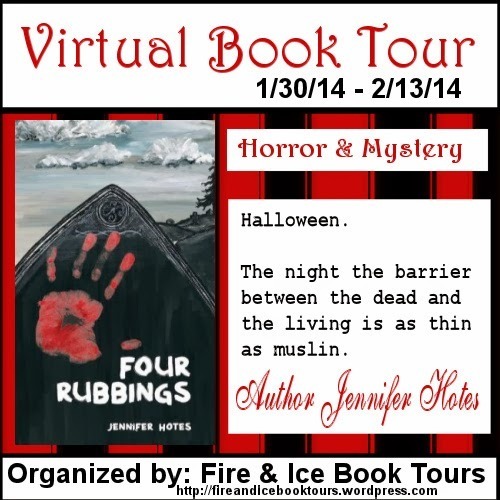 My review: I loved this book. Four teenagers go to a graveyard on Halloween. Each is drawn to a tombstone to do a rubbing of. As they learn about the dead person buried under the tombstones, they each solve their own mystery. I love that this story is written in first person and each character has a chance to show their POV. Thank you, Jennifer, for a good read. About Jennifer Hotes: