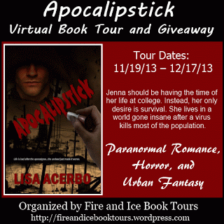 Link To Goodreads: https://www.goodreads.com/book/show/18320279-apocalipstick?ac=1 Excerpt: “By the pricking of my thumbs, Something wicked this way comes…” ran through Jenna’s mind, another remnant of her former life. Now the graveyard was the safest place. Evil openly roamed the streets and it was coming for her. Jenna blinked the sweat out of her eyes and took a deep breath. She swayed with exhaustion. Angels, symbols of all things God and good, adornments of the dead, swam in and out of Jenna’s clouded vision. She placed a scarred hand on the peaceful, cold stone markers, embellished with the names of forgotten loved ones. Nowadays, loved ones wanted to come back from the grave and claw your face off, devour your insides. Jenna wanted to lie down and give up. She was tired and had lost everyone she knew. Hair lank and greasy, mud splattered clothing, old and mismatched. Instead of admitting defeat, she forced herself to stay alert, pushing matted, raven hair out of her eyes with a dirty hand. Jenna could not remember a time in her recent history where she felt clean or had a moment in which she was not fighting to stay alive. Looking around the darkened landscape, she wanted to live. She shoved to her feet once again. Buy Links: Amazon http://www.amazon.com/Apocalipstick-ebook/dp/B00EDYQUSA/ref=sr_1_3?ie=UTF8&qid=1382925462&sr=8-3&keywords=apocalipstick Barnes & Noble http://www.barnesandnoble.com/w/apocalipstick-lisa-acerbo/1116538083?ean=9781629290188 Eternal Press http://eternalpress.biz/book.php?isbn=9781629290171