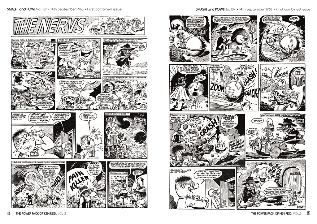 When did you discover Ken Reid in comics?I discovered Ken Reid when I started collecting British comics some 10 years ago. I remember first seeing his Odhams strips on a couple of blogs – yours and Lew Stringer’s in particular. I was instantly fascinated and decided I wanted nothing less than complete runs of Frankie Stein, Jasper the Grasper, Queen of the Seas, Dare-A-Day Davy and The Nervs. Original WHAM!, SMASH! and POW! comics weren’t easy to find and acquire but I was lucky to pick up a large collection in pristine condition from a Comics UK Form member, I also remember winning a large joblot on eBay. A seller in Australia and a dealer in the UK helped me fill quite a few remaining gaps. All the pages that will go into THE POWER PACK OF KEN REID - the collected edition that I am now doing, have been scanned from my collection.