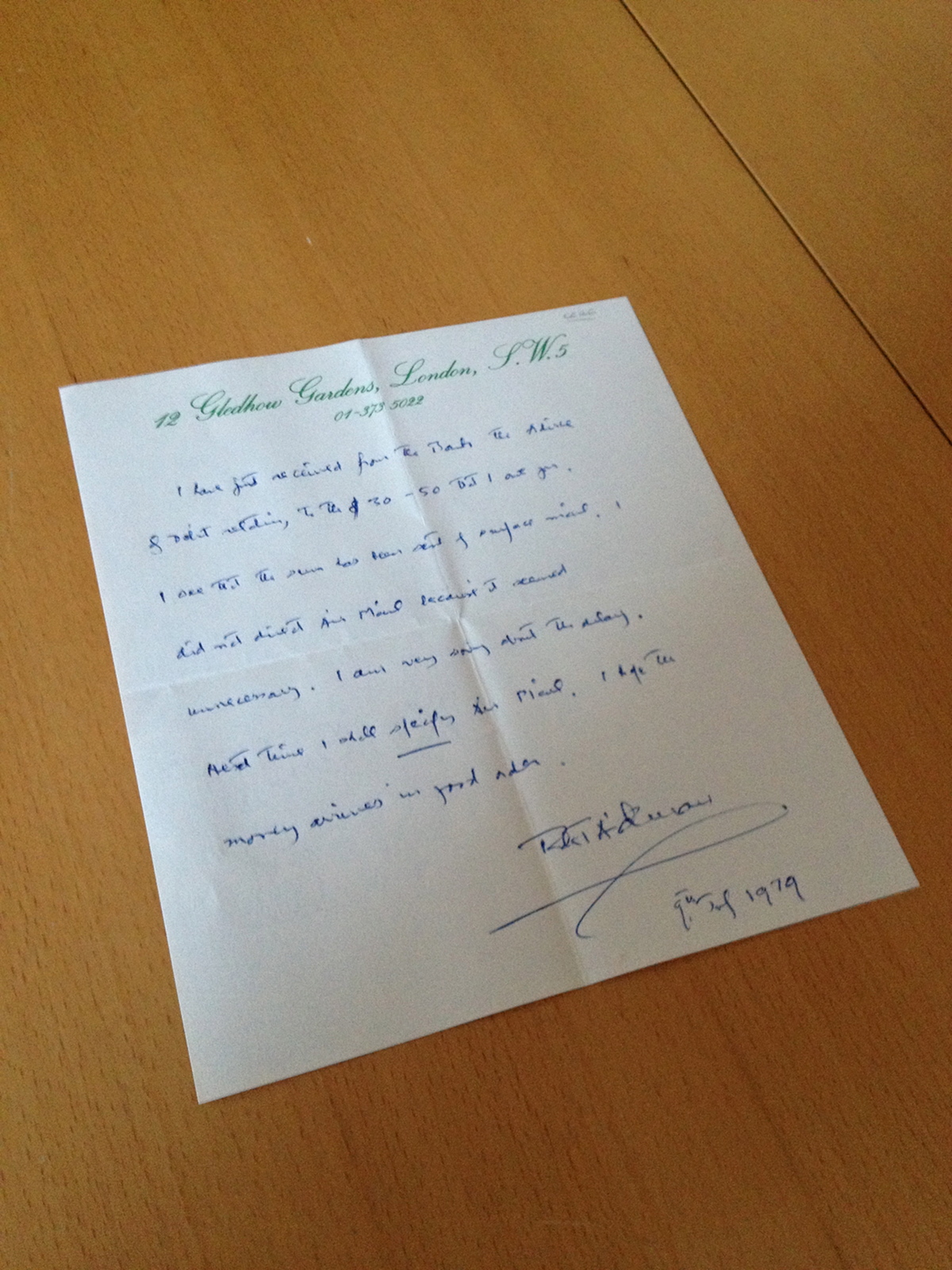 Finally this is a letter Aickman wrote, with his Gledhow Gardens letterhead. It's not a particularly interesting letter, being about some money he owed someone, but Aickman wrote it!