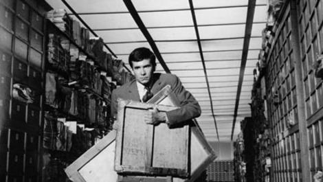 A still from The Trial (1962) showing Anthony Hopkins (below). Orson Welles himself played the cigar-chomping Advocate. Don't you just love black and white films?