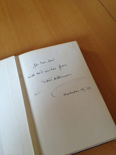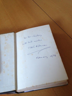 This is Intrusions, reading "for Kate who has been here before". I don't know who that is either. This was signed in August 1980, only 6 months before his death. I acquired this book from the Inland Waterways Association.