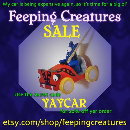 Also, if you follow my Feeping Creatures artwork, you may be interested to know I have a sale going on for items in my Etsy shop.