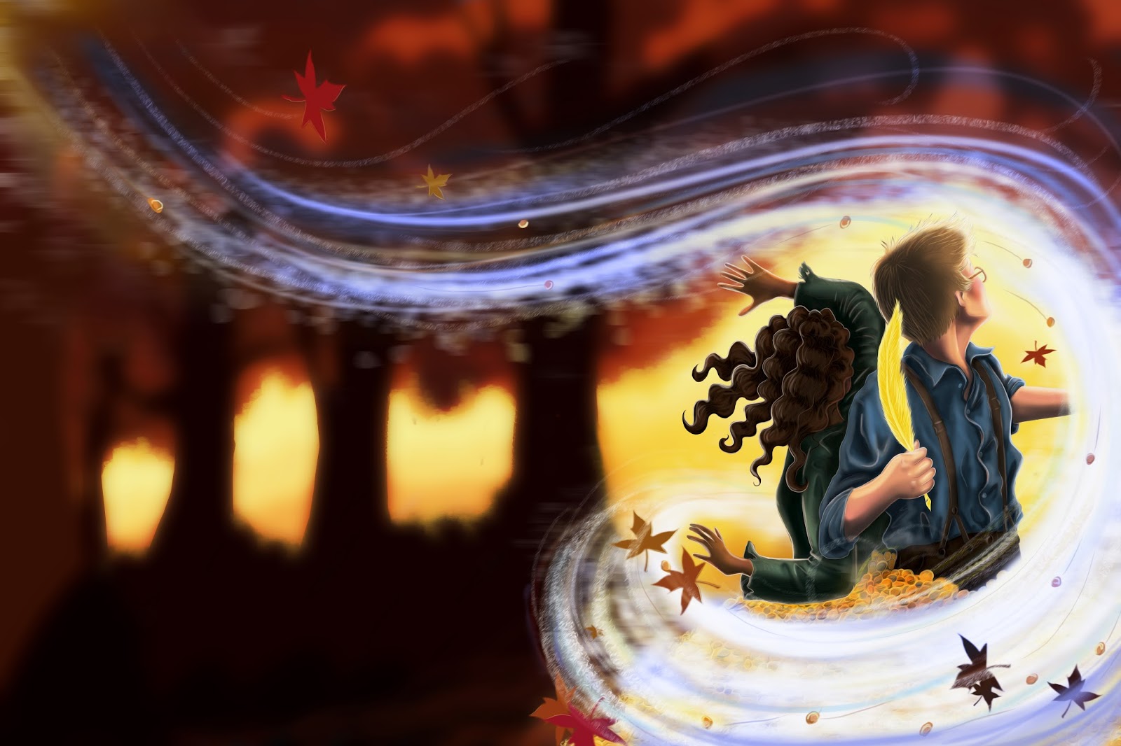 Next I paint. While I didn't manage to hold on to a layer of just the flat layers of paint my first step is to lay down all the colors I will use through the piece. After I lay down the basic colors I start with shadows then highlights. The whole purpose it to find three layers of light (a dark, medium, and light). This one here showcases the painting's back ground and also the main front image of the boy and girl without the final highlights.