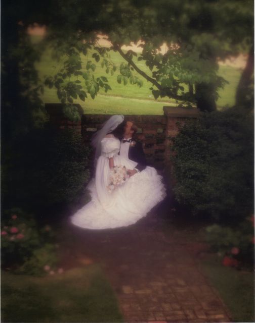 In the gardens of the Gorgas House....my Miss Scarlet Picture, on the lap of my YankeeFor the most part, the wedding went off without a hitch. If you don't count the fact that I got wound up with the photographer taking fantasy "Scarlet" pictures of me and my Yankee and was late to my own wedding by a whole half hour. And my matron of honor's brand new baby insisted that her precious vocals become a memento for all posterity on my wedding video. My long time priest had an emergency at the very last second and was a no show, and the priest that showed up had breath like a hundred year old rhinoceros who had just fed from a poop puddle! With every "H" and "P" sound , I thought I might faint. Yep, other than that it was pretty smooth. Then came the reception.