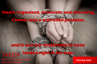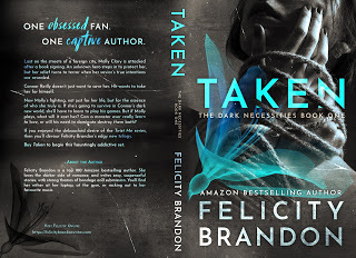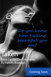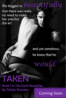 Lost on the streets of a foreign city, Molly Clary is attacked after a book signing until an unknown hero steps in to protect her. But Molly’s relief soon turns to terror when her savior’s true intentions are revealed. Connor Reilly doesn’t just want to save her, he wants to take her for himself.Now Molly’s fighting, not just for her life, but for the essence of who she truly is. If she’s going to survive in Connor’s dark new world, she’ll have to learn to play his base games. But if Molly plays, what will it cost her? Can a monster ever really learn to love, or will his need to dominate destroy them both?If you enjoyed the debauched desire of the Twist Me series, then you’ll devour Felicity Brandon’s edgy new trilogy.Buy Taken to begin this hauntingly addictive set. Taken is an edgy, fast-paced, dark romance and is the first book in The Dark Necessities trilogy. Molly and Connor’s story continues in Tamed, and concludes in Entwined.