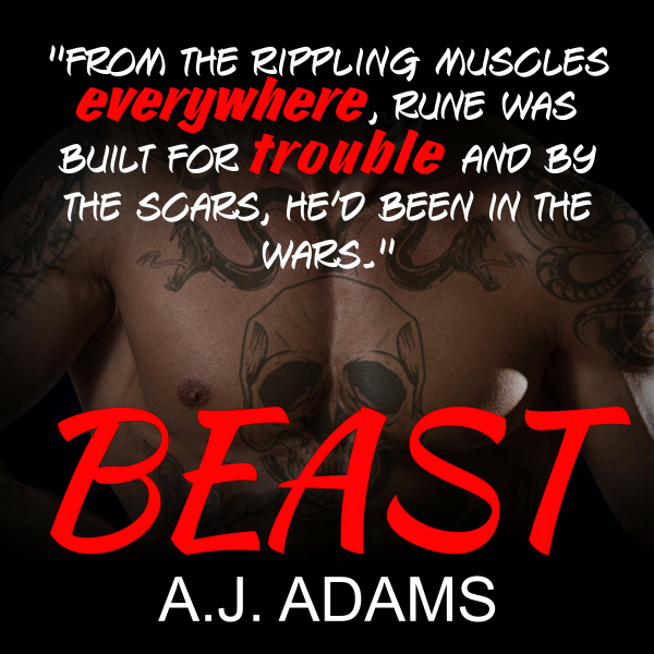 DIY Title: Beast Author: AJ Adams He stuck the knife in the ground and stripped off his leathers. The tunic came off, revealing a long, lean, muscled torso, covered in tattoos. Snakes ran up and down his arms, his pecs and his shoulders. A skull blazed on his chest. Then he was pushing apart my legs, settling between my thighs, leaning over me. He smelled of smoke, leather and musk. It was terrifying, like being at the mercy of an animal. Falsely accused, Wynne is determined to clear her name. However, a trip to petition the Steward at Brighthelme turns disastrous when the Beasts, fearsome warriors from the frozen north, raze the city. When Wynne is carried away, she’s determined to regain her freedom but Rune, her captor, has other ideas. Beast is set in Prydain, an imaginary place that combines Anglo-Saxon England with Medieval England, the Teutonic Kingdom and the Viking Age. WARNING: This story contains kidnapping, rape, dubious consent and graphic violence. It is a standalone novel; no cliff-hangers. Amazon US Amazon UK Amazon CA Amazon AU He stuck the knife in the ground and stripped off his leathers. The tunic came off, revealing a long, lean, muscled torso, covered in tattoos. Snakes ran up and down his arms, his pecs and his shoulders. A skull blazed on his chest. Then he was pushing apart my legs, settling between my thighs, leaning over me. He smelled of smoke, leather and musk. It was terrifying, like being at the mercy of an animal. AJ Adams is a Scottish-Dutch author currently living in Malaysia. In her regular life she is a columnist and feature writer. She works from home, where she is closely snoopervised by cats, Target, Guido and swooner. Amazon Author Page Goodreads Website