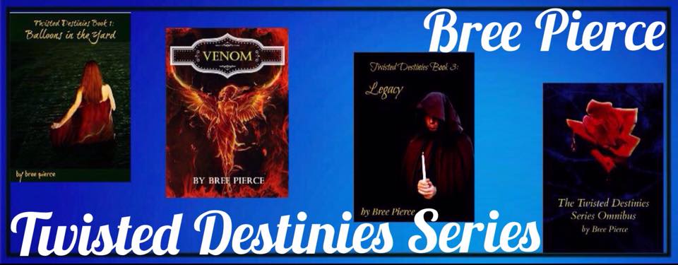 Bree has loved to write since she was a small child and always wanted to become an author. In January, 2015 that dream finally came true for her as she published her first novella, The Twisted Destinies Series Book 1: Balloons in the Yard. Don't let the title fool you; this book is about an underground lair of vampires with a little bit of a horror spin to it. She lives in the deep south in Arkansas with her husband, 4 kids, and 2 dogs. Bree loves to read and has quite the addiction to coffee and sweets. Her inspiration comes mostly from dreams and conversations with her husband.