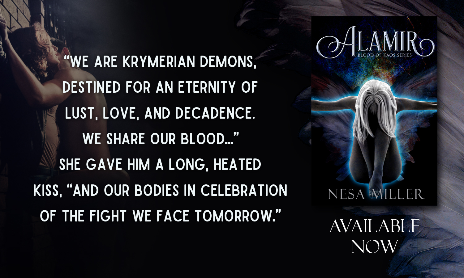 Social Media LinksFacebook - https://www.facebook.com/theAlamir/Goodreads - https://www.goodreads.com/author/show/6925890.Nesa_MillerWebsite - https://ladyofkaos.com/Twitter - @Ladyofkaos