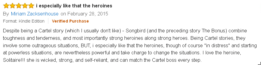 Critical reviews mean pointing out the rough with the smooth. There’s nothing bad about this book at all, except that I wasn’t in the mood for a lot of sex, and as it’s an erotic romance, I skipped a few of the longer scenes. It didn’t worry me because the story kept me enthralled.