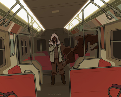 [Description: A figure in a darkened subway car who is fading into smoke.]