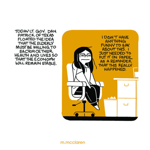 [Descriptions: A two panel comic explaining how some are beginning to float the idea that the elderly and immunocompromised should risk their lives to keep the economy stable. Which is kinda terrible.]