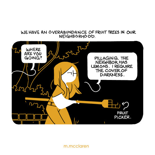 [Description: Using the cover of darkness, I go to relieve the neighbors of some of the lemons on the trees on their property.]