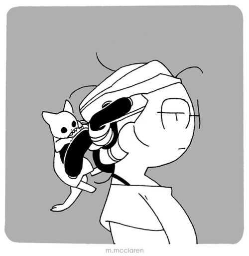 [Description: A three panel comic that depicts me and my foster...
