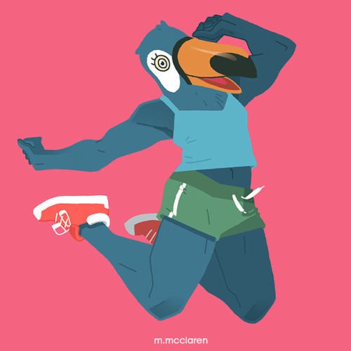 [Description: An illustration of Tuca from Tuca and Bertie. She is jumping up against a pink background.]
