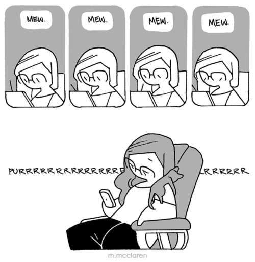 [Description: A five panel comic. In the first four panels I am working as a kitten ‘mews’ in the background. In the final panel, I am leaning back, looking on my phone, with the kitten sleeping on my shoulder.]