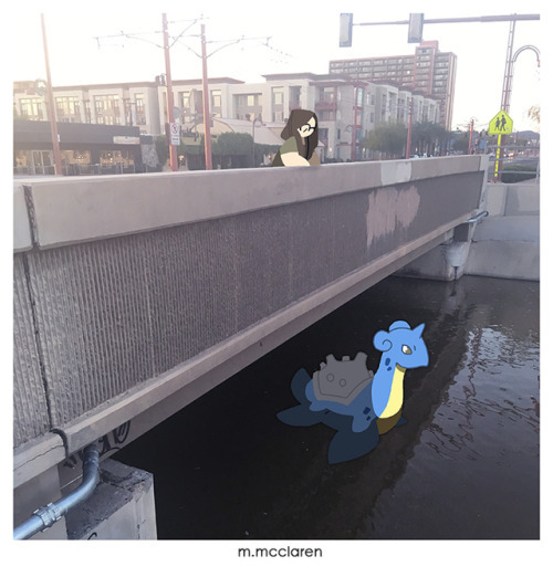[Description: A photo of a canal bridge. A cartoon of myself stands looking down at the canal and a Lapras from Pokemon floating beneath.]