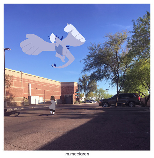 [Description: A photo of a parking lot. A cartoon of myself stands beneath a Lugia from Pokemon.]