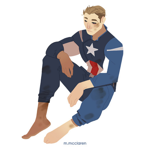 [Description: An illustration of Captain America sitting. He’s a little dirty and has taken off his shoes and gloves.]