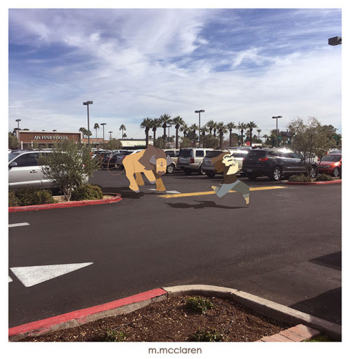 [Description: A photo of a parking lot. Running through the parking lot is a cartoon of myself being chased by a Tauros from Pokemon.]