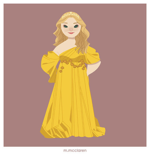 [Description: A cartoon of Amanda Seyfried as she appeared at the 2018 Met Gala in a yellow dress.]