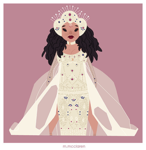 [Description: An illustration of Cardi B as she appeared at the 2018 Met Gala in a white beaded ballgown.]