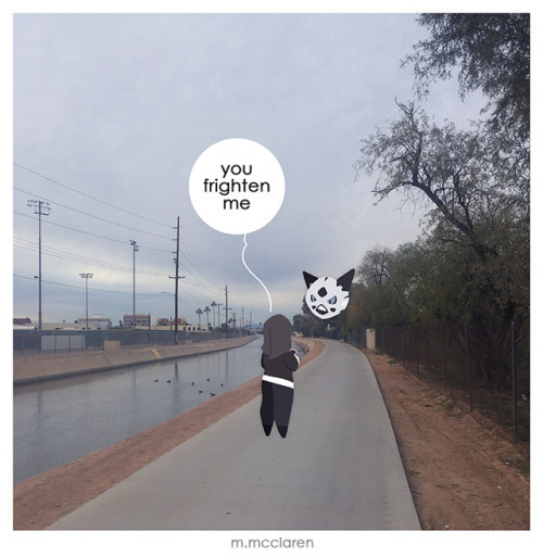 [Description: A photo of a canal. A cartoon of myself stands staring at a Glalie from Pokemon. The text reads: ‘You frighten me.’]