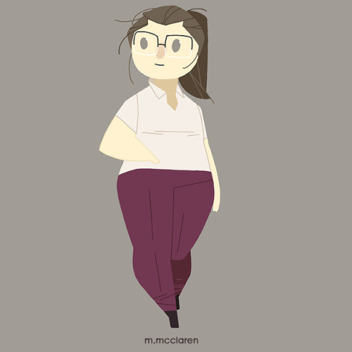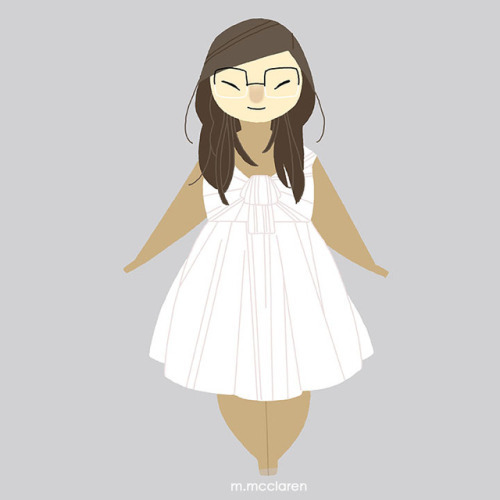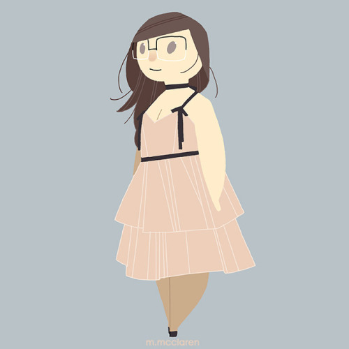 [Description: A cartoon of myself wearing a light pink dress with black straps and a thing belt.]
