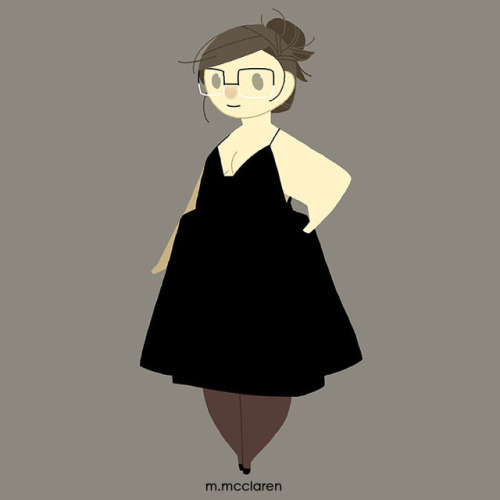 [Description: A cartoon of myself wearing a black dress, black nylons and black shoes.]