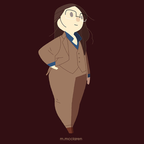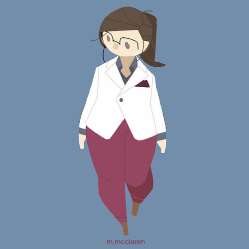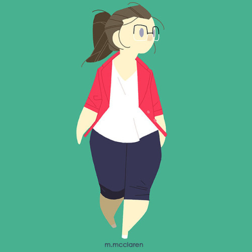 [Description: A cartoon of myself wearing brown boots, magenta pants, a gray/blue button up and an off white jacket.]