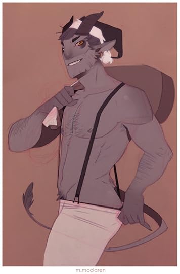 [Description: A smutty Krampus wearing light pants, suspenders,...