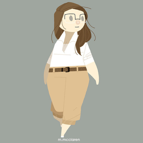 [Description: A cartoon of myself wearing a white blouse, tan...