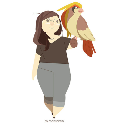 [Description: A cartoon of myself with a Pidgeot from Pokemon sitting on my arm.]