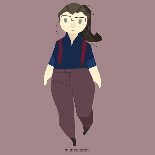 [Description: A cartoon of myself wearing a navy blue button up, brown jeans, red suspenders, and dark boots.]