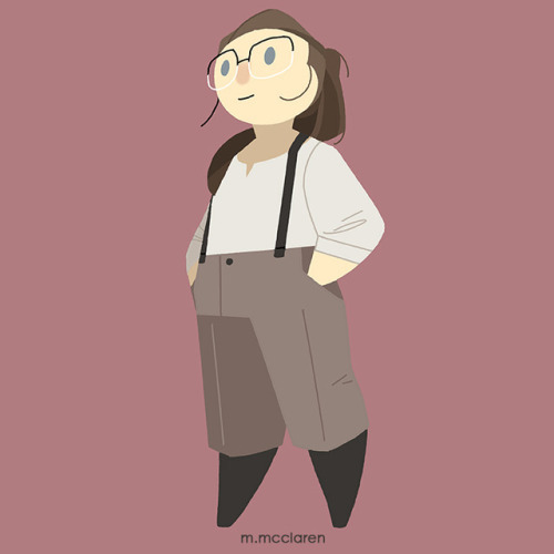 [Description: A cartoon of myself wearing dark boots, tan pants, a light gray long sleeve shirt, and suspenders.]
