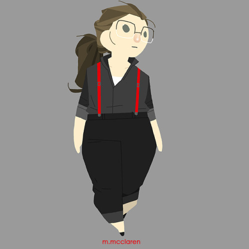 [Description: A cartoon of myself wearing dark jeans and a dark button up with red suspenders.]