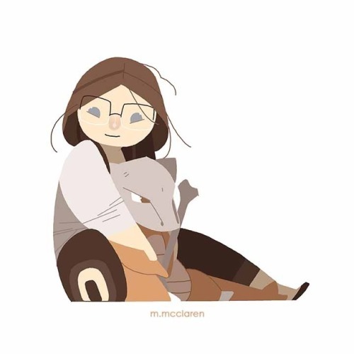 [Description: A cartoon of myself wearing a light gray shirt and dark pants. Sitting in my lap is a Marowak from Pokemon.]