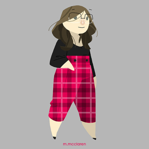 [Description: A cartoon of myself wearing a dark scoop neck shirt and high-waisted plaid red pants.]