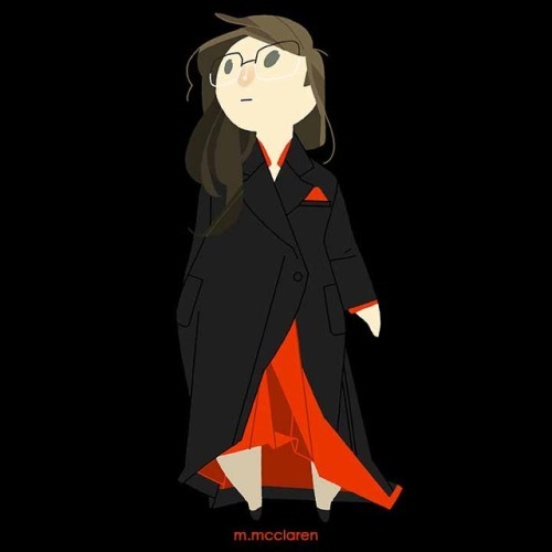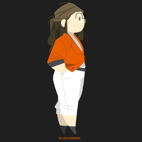 [Description: A cartoon version of myself wearing an orange blazer with black sleeves, a gray button up, white pants and dark boots and belt.]