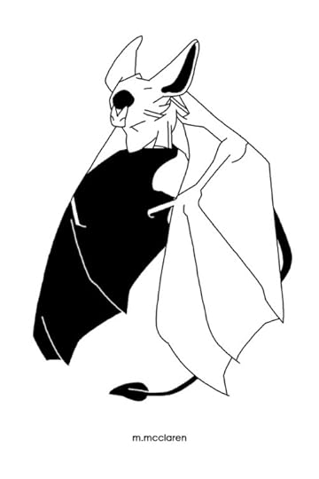 [Description: A black and white illustration of the cryptid: Popobawa. It looks like a bat with a long tail and one eye.]