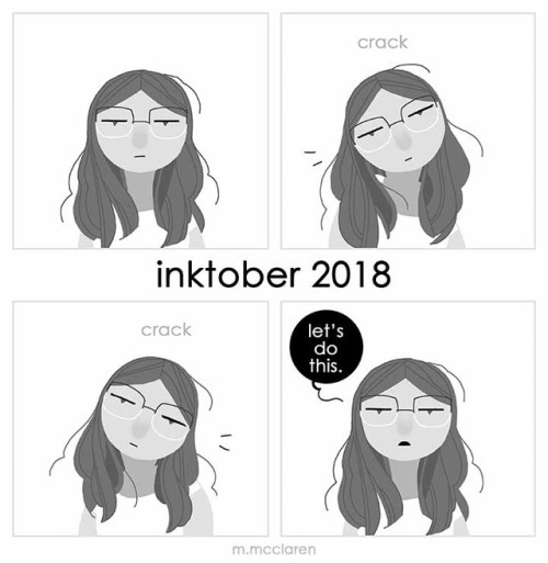 [Description: Four panels featuring a cartoon version of myself. I am wearing a white shirt, two tone glasses, and my hair down around my shoulders. I also have a blank expression in all four. In panel 1 I am just looking forward. In panel 2 I crack my neck to my left. In panel 3 I crack my neck to my right. Panel 4 is a repeat of panel 1, except that I am now speaking.]