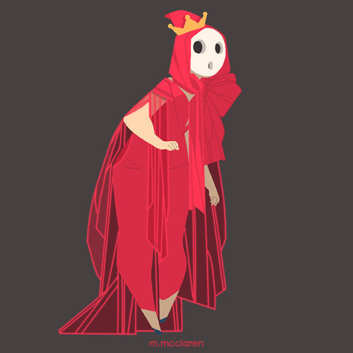 Shy Guy belongs to Mario . Artwork by Meredith McClaren