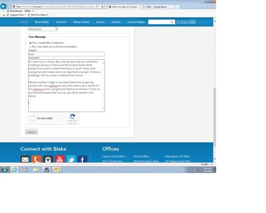 SO I CALLED HIS DC OFFICE AND SAID BASICALLY THE SAME THING I SENT VIA EMAIL.